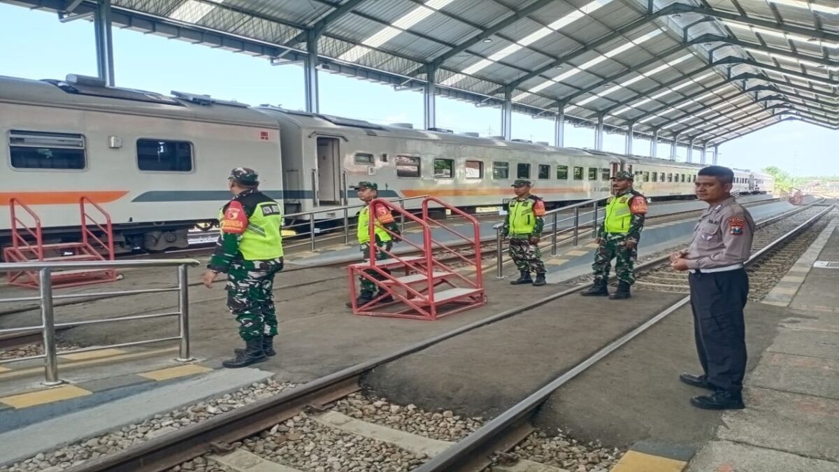 Personil Gabungan TNI Polri di Lamongan disiagakan di Stasiun Babat dan Lamongan Guna Amankan Arus Balik