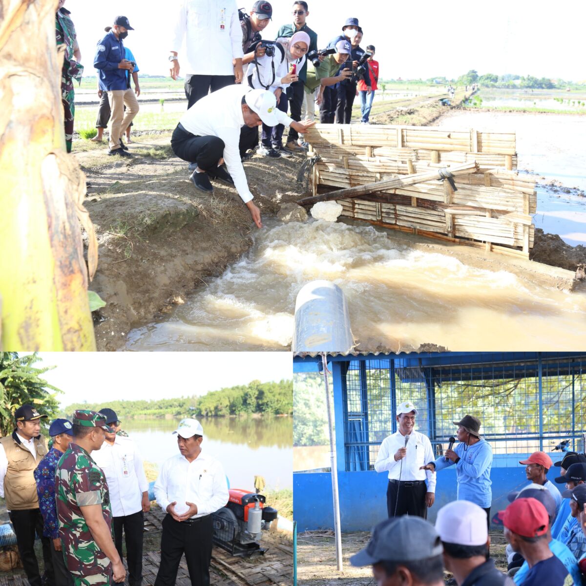 Menteri Pertanian RI, Dr. Ir. H. Andi Amran Sulaiman, M.P, dalam kunjungannya meninjau Pompanisasi dan panen raya padi bersama di Desa Trepan , Kecamatan Babat, dan Desa Blawirejo Kecamatan Kedungpring Kabupaten Lamongan.