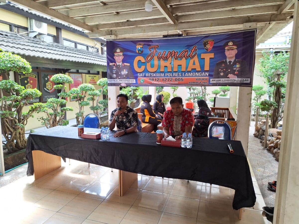 Dalam sambutannya, KBO Satreskrim menyampaikan terima kasih atas partisipasi masyarakat dalam kegiatan “Jumat Curhat” Polres Lamongan yang digelar di Loby Reskrim pagi ini.