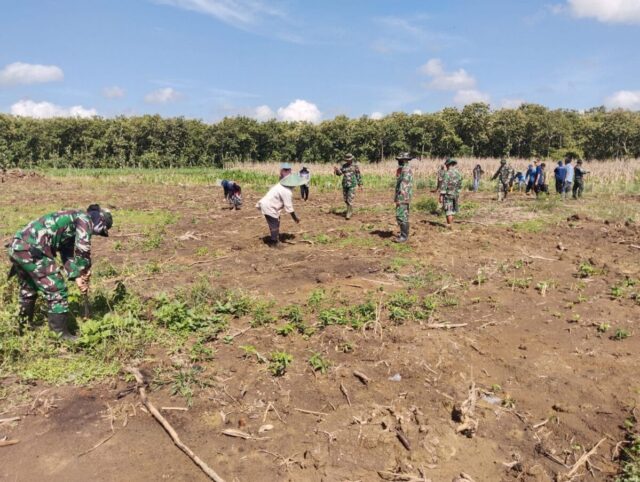 Kabar1lamongan.com – Dalam rangka mendukung program ketahanan pangan nasional, Kodim 0812 Lamongan melalui koramil 0812/23 Solokuro bersinergi bersama Muspika Solokuro, UPT Dinas Pertanian Solokuro dan Perhutani KPH Tuban, melaksanakan penanaman bersama tanaman pertanian komoditi jagung di Petak 71I Desa Tebluru Kec Solokuro Kabupaten Lamongan,Minggu (28/04/2024).