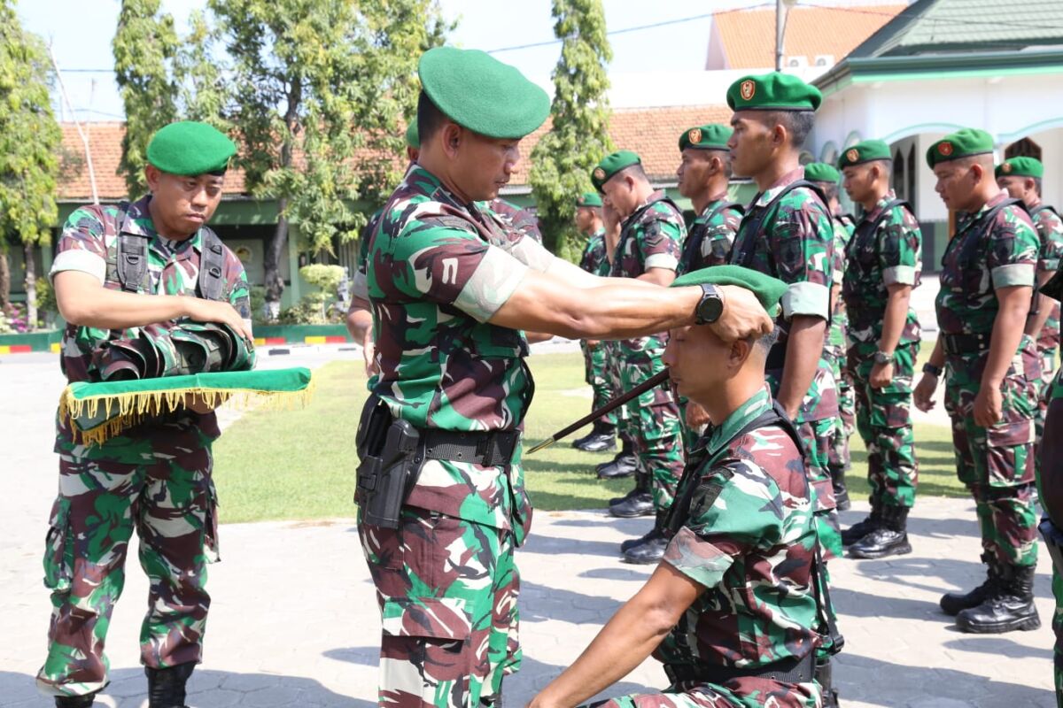 Pelepasan tersebut ditandai dengan tradisi pemakaian baret kepada puluhan Prajurit TNI yang selesai melaksanakan pembinaan dan pembekalan sebagai Babinsa di Lapangan Upacara Makodim 0812/Lamongan, Minggu (02/06/2024).
