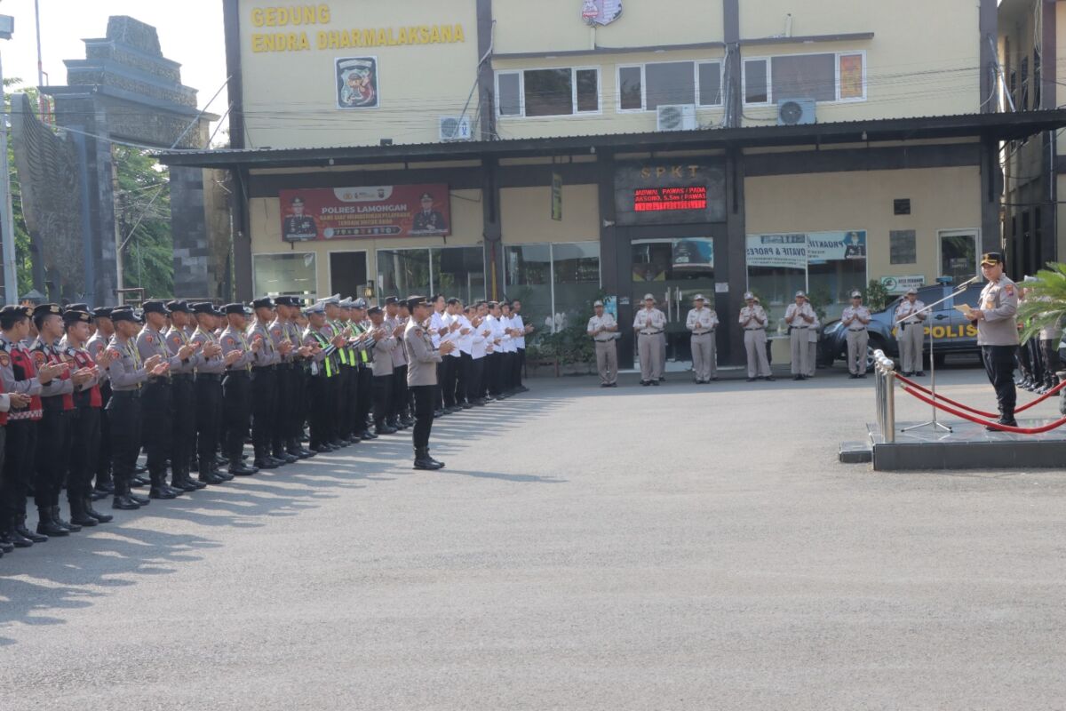 Kegiatan ini berlangsung di lapangan apel Mapolres Lamongan dan dipimpin oleh Wakapolres Lamongan, KOMPOL Akay Fahli, S.Kom, S.I.K, M.Si.