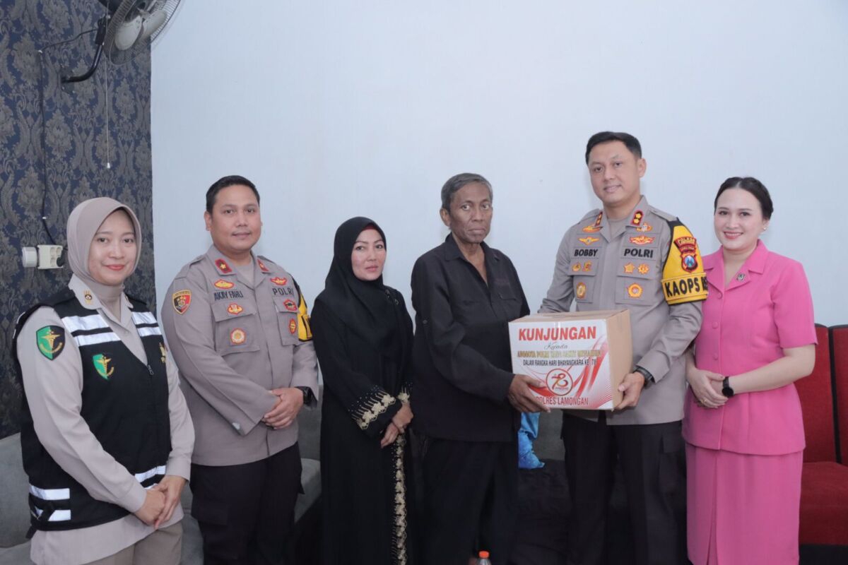 Selanjutnya, rombongan bergerak menuju rumah Aiptu Suwadi, salah satu anggota Polri yang menderita sakit menahun. Kapolres Lamongan dan Ny. Bianca Bobby menyerahkan tali asih kepada Aiptu Suwadi, menunjukkan kepedulian dan empati Polres Lamongan terhadap anggotanya yang tengah berjuang melawan penyakit.