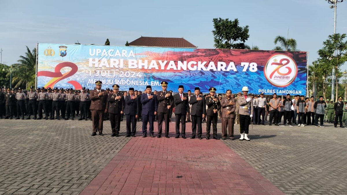 Sementara itu, Kapolres Lamongan AKBP Bobby Adimas Condroputra S.H.,S.I.K.,M.Si., mengucapkan terima kasih kepada TNI yang hadir dalam Upacara hari Bhayangkara ke-78.
