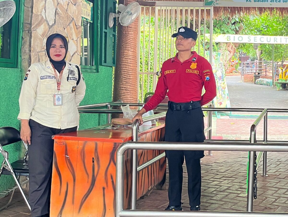 Petugas PAM Obvit dan anggota Polsek Paciran melakukan pengamanan di destinasi wisata utama, WBL dan Maharani Zoo.