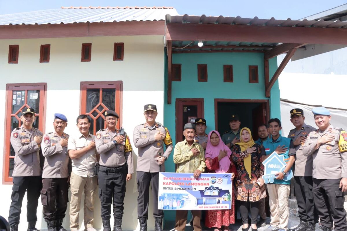 Rangkaian Kegiatan Hari Bhayangkara ke-78 : Kapolres Lamongan Resmikan Bedah Rumah Layak Huni Bapak Samirun