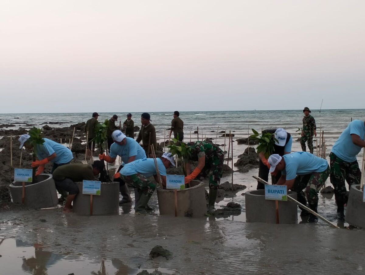 Sinergitas TNI Bersama Pemkab Lamongan Tanam 1000 Mangrove