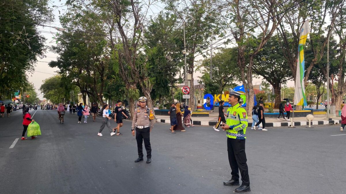 Berikan Rasa Aman, Anggota Polres Lamongan Gelar Pengamanan Minggu Ceria Di Alun-alun.