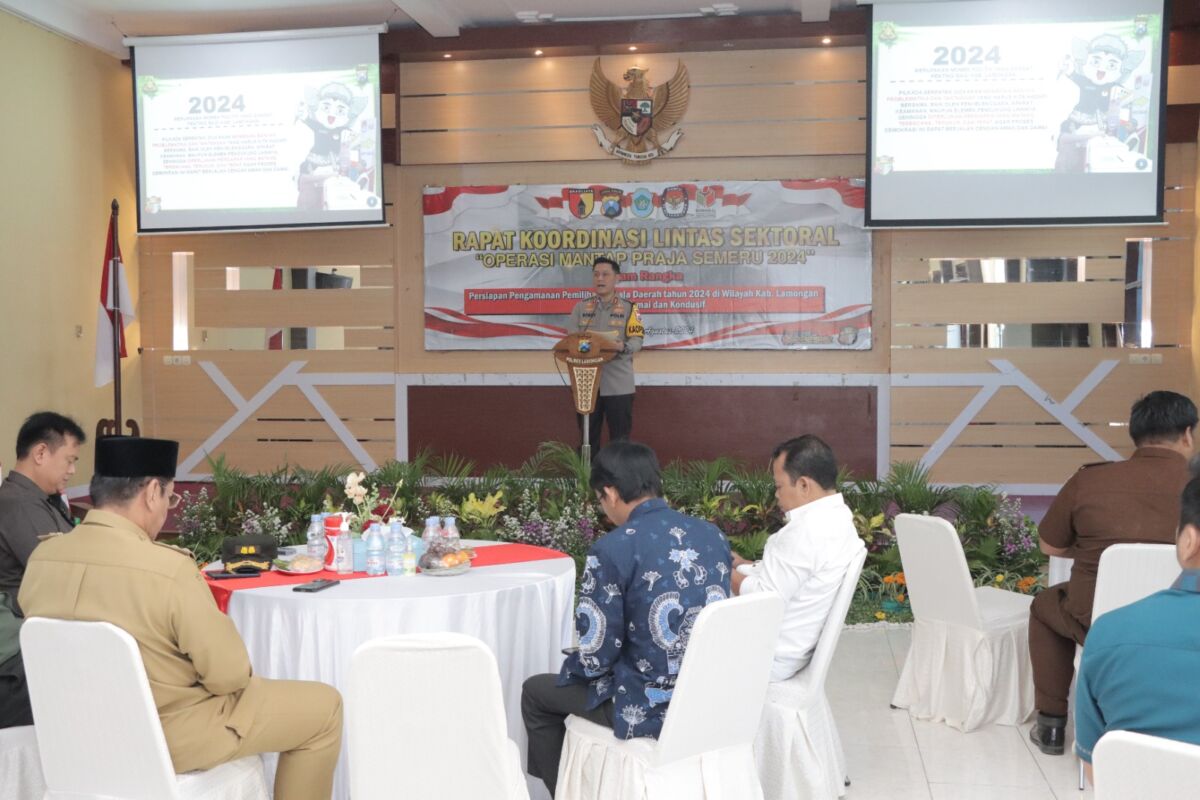Lamongan, Kabar1lamongan.com, 13/08/2024 – Polres Lamongan menggelar Rapat Koordinasi Lintas Sektoral Operasi Mantap Praja Semeru 2024 sebagai persiapan pengamanan Pemilihan Kepala Daerah (Pilkada) tahun 2024 di wilayah Kabupaten Lamongan.