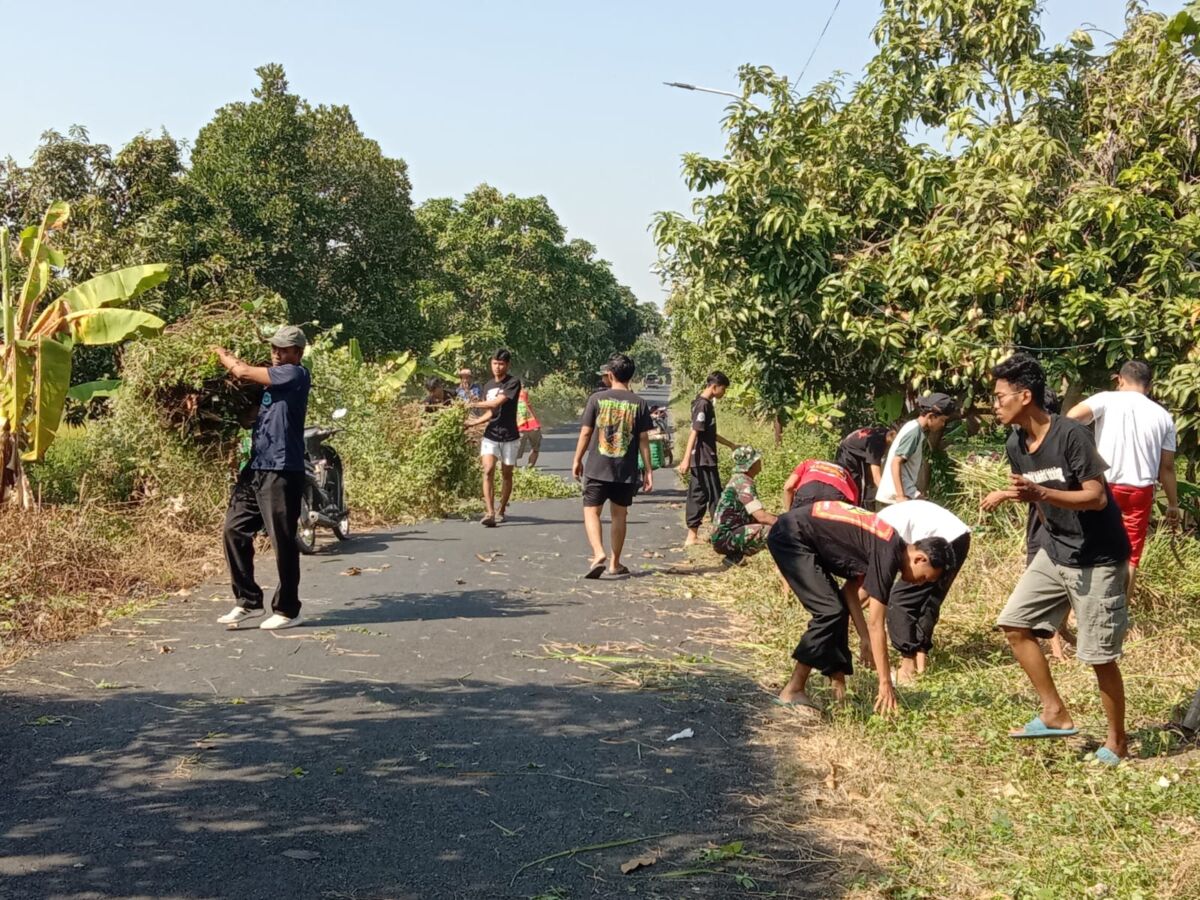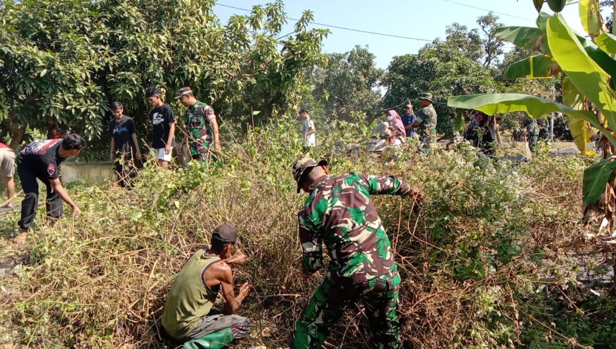 Daerah Babinsa Jajaran Kodim 0812 Lamongan Laksanakan Karya Bhakti Pembersihan Desa Mertani.