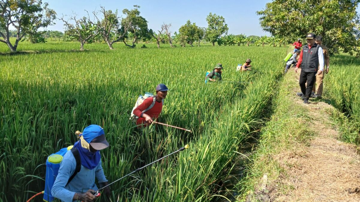Lamongan, Kabar1lamongan.com – Babinsa Koramil 0812/21 Kalitengah bersama Dinas Ketahanan Pangan dan Pertanian Kabupaten Lamongan bersinergi melaksanakan sosialisasi penyemprotan hama wereng dan ulat.Sosialisasi dilaksanakan bersama Kelompok Tani Tumbuh Desa Kuluran Kecamatan Kalitengah Kabupaten Lamongan, Rabu (14/08/2024).