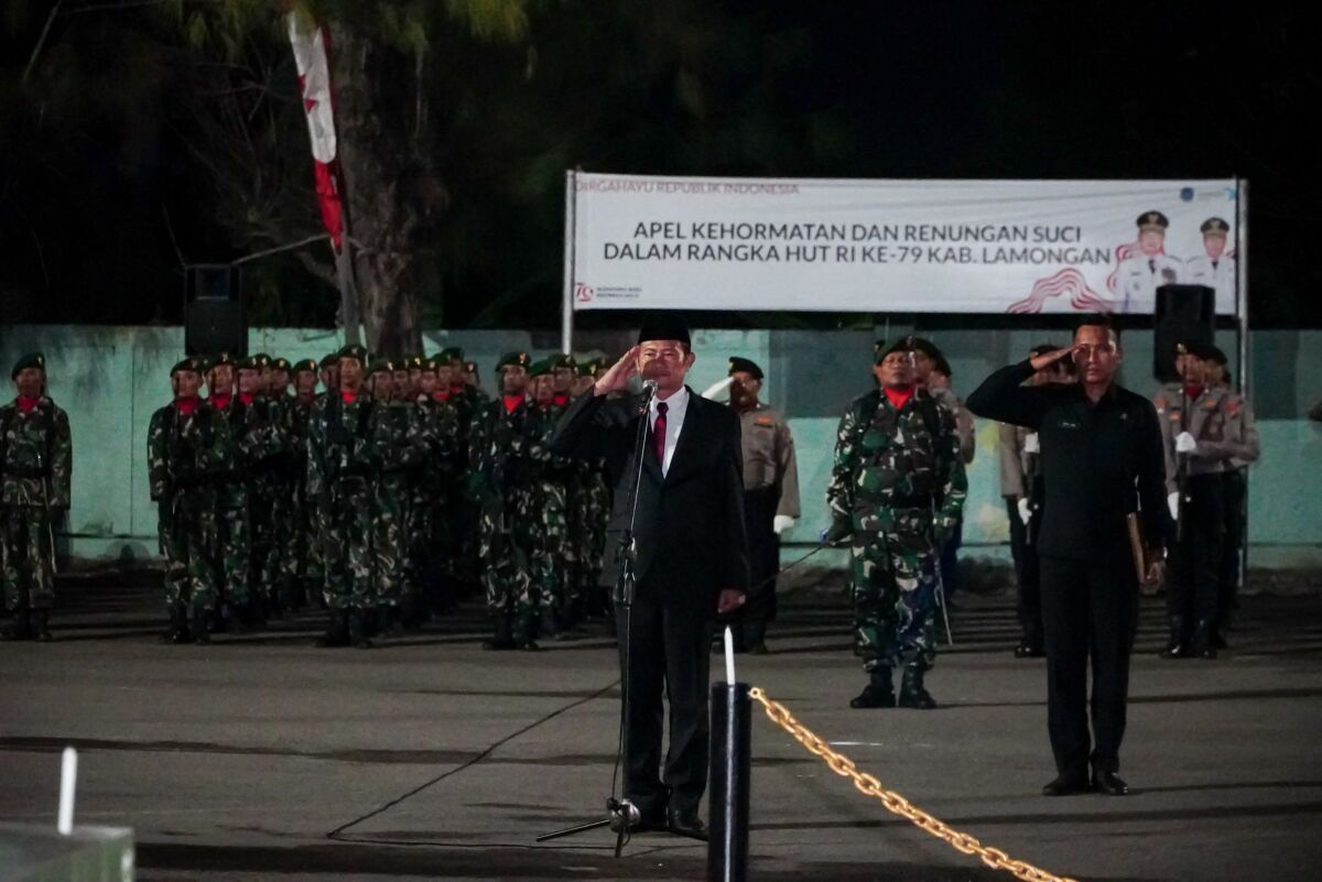 Suasana sunyi penuh khidmat, membalut berlangsungnya Apel kehormatan dalam malam renungan yang dipimpin langsung oleh Bupati Lamongan dan di hadiri jajaran Forkopimda Kab Lamongan.