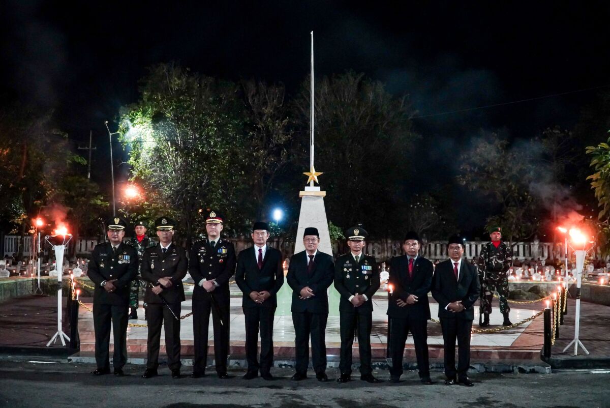 Lamongan, Kabar1lamongan.com – Malam menjelang peringatan HUT RI ke-79 di Taman Makam Pahlawan Kusuma Negara, Kabupaten Lamongan, Jawa Timur nampak penuh dengan khidmat.