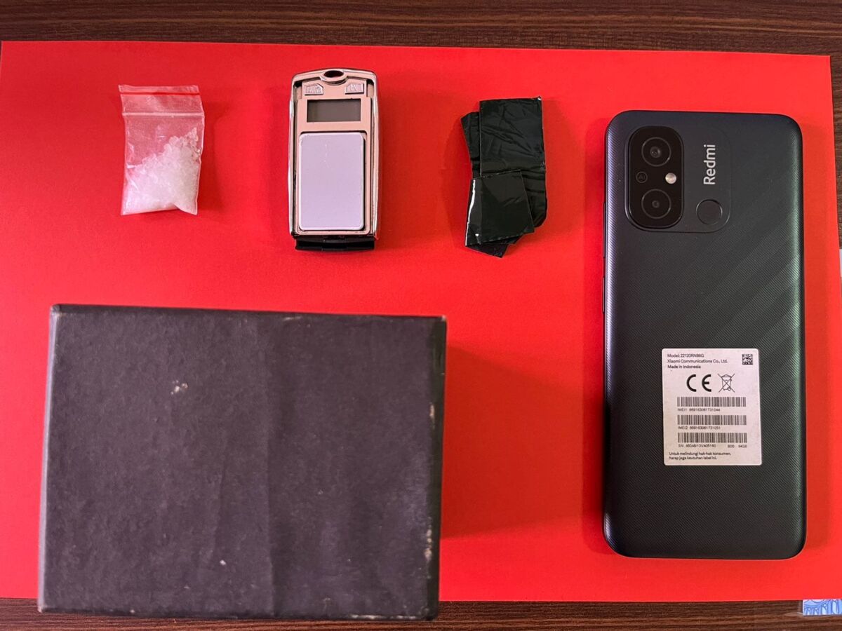 “Setelah dilakukan penggeledahan, petugas menemukan barang bukti berupa satu klip plastik berisi narkotika jenis sabu dengan berat sekitar 1,44 gram, satu buah timbangan elektrik, satu buah kotak warna hitam, satu buah solasi double tip, dan satu unit HP Redmi berwarna abu-abu.” tambahnya.