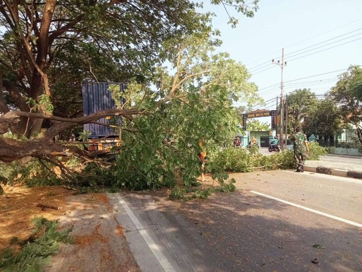 Gerak Cepat Koramil 0812/26 Pucuk Lakukan Evakuasi Pembersihan Pohon Tumbang di jalan pantura