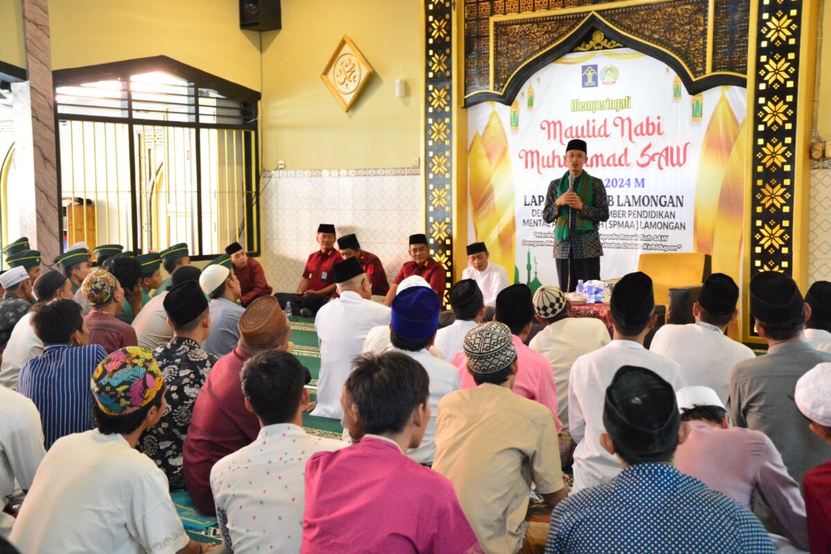Kabar1lamongan.com, 26 September 2024 – Dalam rangka memperingati Maulid Nabi Muhammad SAW 1446 H, Lembaga Pemasyarakatan (Lapas) Kelas IIB Lamongan menggelar acara keagamaan bersama dengan yayasan Sumber Pendidikan Mental Agama Allah (SPMAA) Lamongan.