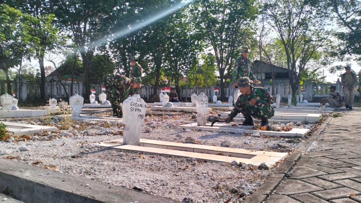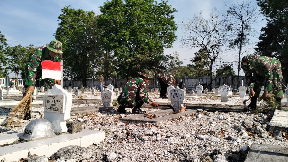 Daerah Kodim 0812/Lamongan Gelar Karya Bakti Pembersihan TMP, Jelang HUT TNI ke-79