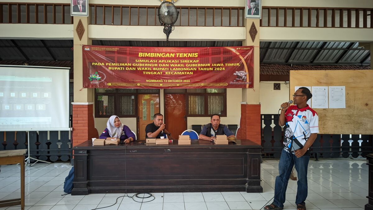 Bertempat di pendopo kecamatan, kegiatan ini dihadiri seluruh Jajaran PPK, Kanit Intel Polsek Ngimbang, dan diikuti oleh Panitia Pemungutan Suara (PPS) sebanyak 19 desa sekecamatan Ngimbang.