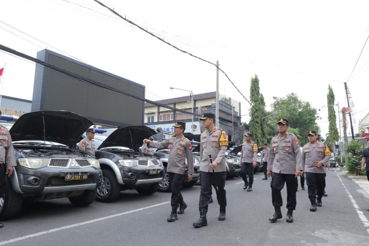 Kegiatan tersebut mencakup pemeriksaan kondisi fisik kendaraan, kelengkapan peralatan, hingga kesiapan teknis seluruh alat yang akan digunakan dalam operasi pengamanan.
