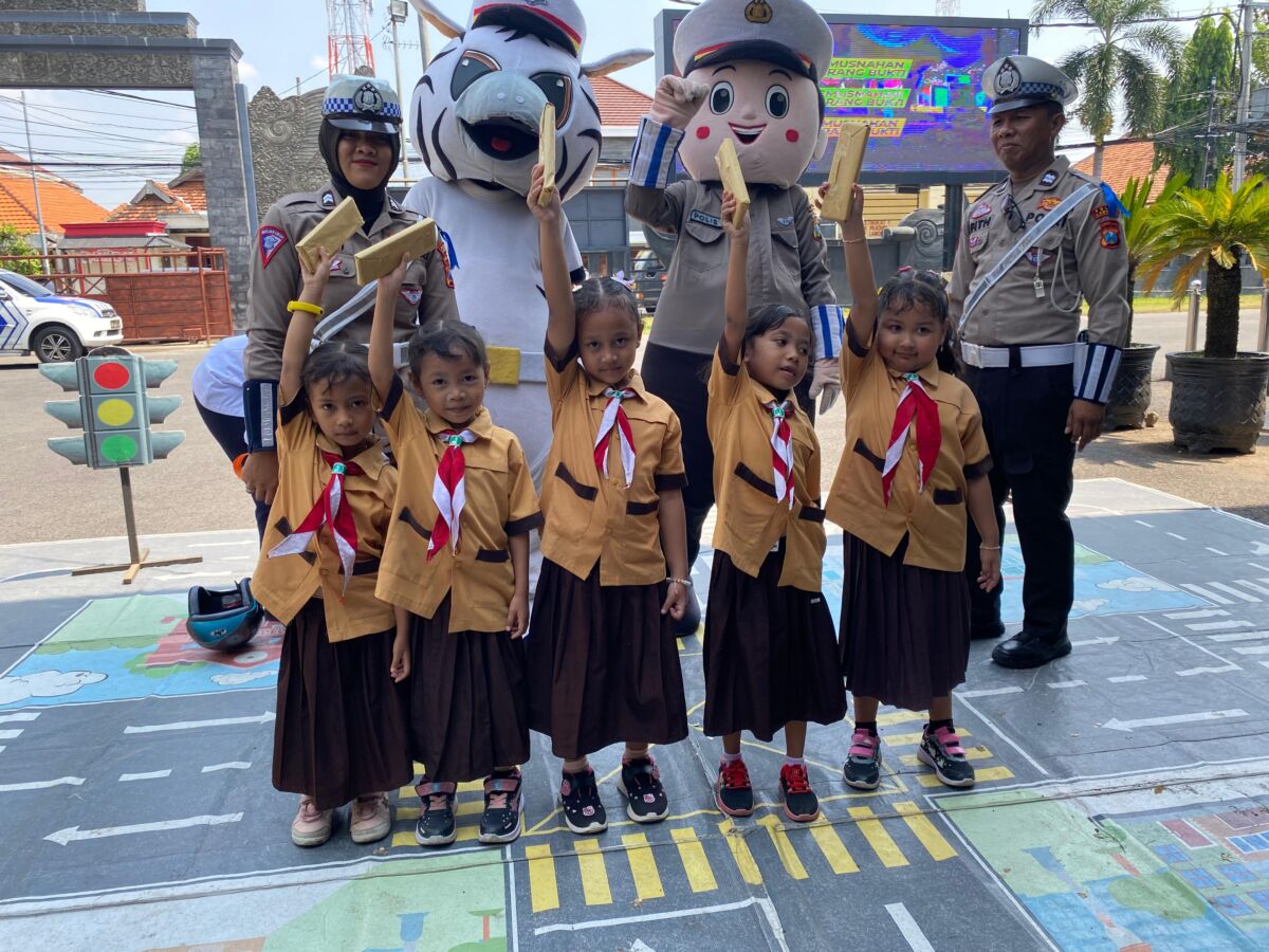 Anak-anak juga diajak bermain peran menjadi “polisi kecil” yang menjaga ketertiban lalu lintas, guna memperdalam pemahaman mereka tentang peran polisi dalam kehidupan sehari-hari.