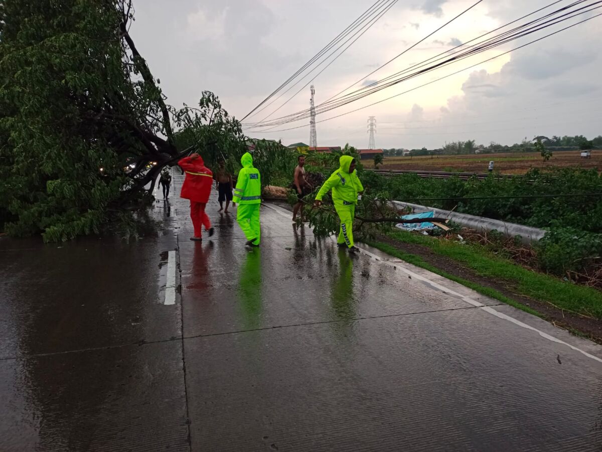 Di Kecamatan Sugio, tepatnya di Dusun Babatan, Desa Sekarbagus, petugas dari Polsek Sugio, Koramil, dan Satpol PP juga melakukan evakuasi pohon tumbang yang menghambat lalu lintas.