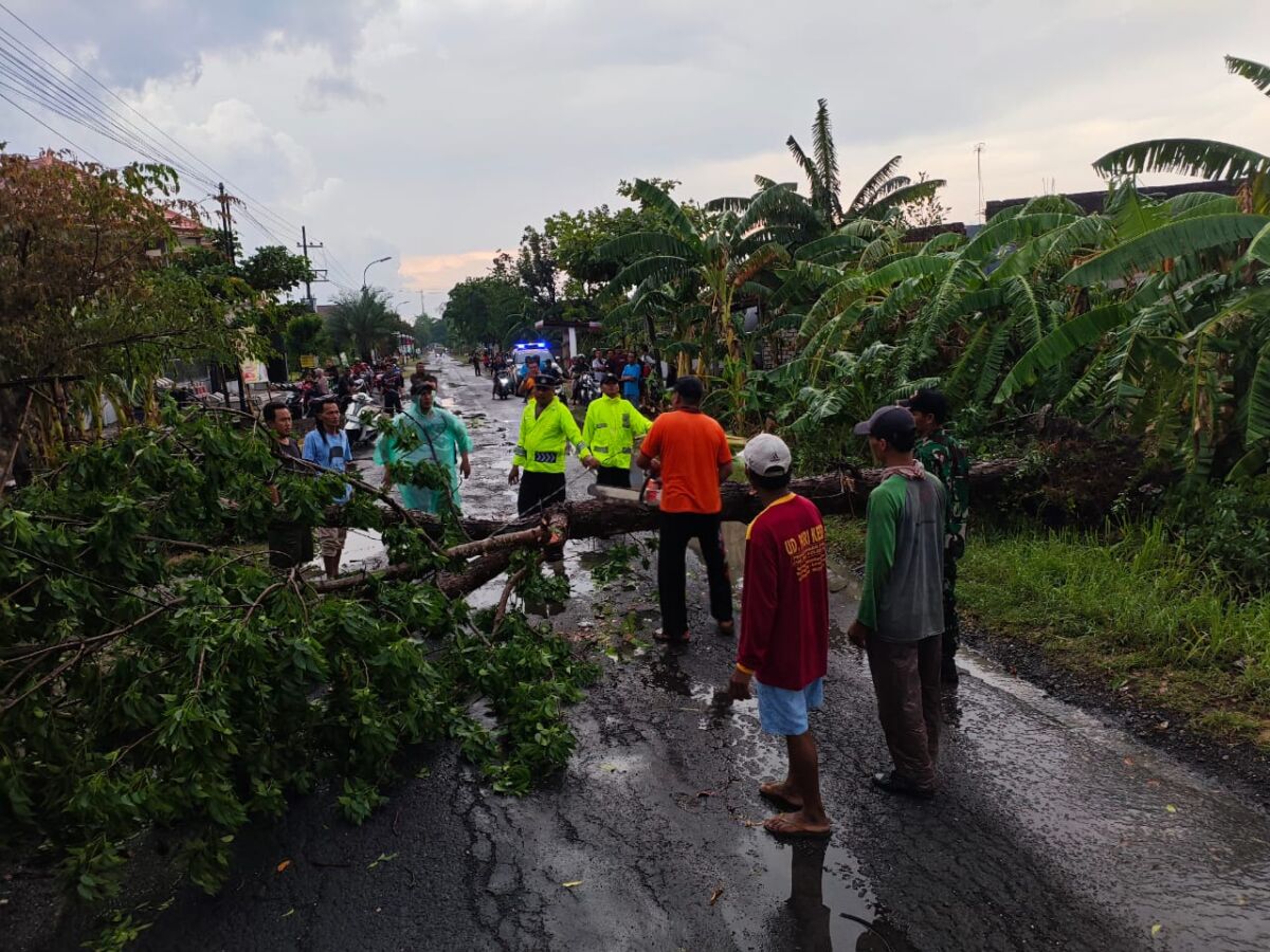 Respon Cepat, Polsek Jajaran Polres Lamongan Evakuasi Pohon Tumbang Akibat Hujan Deras