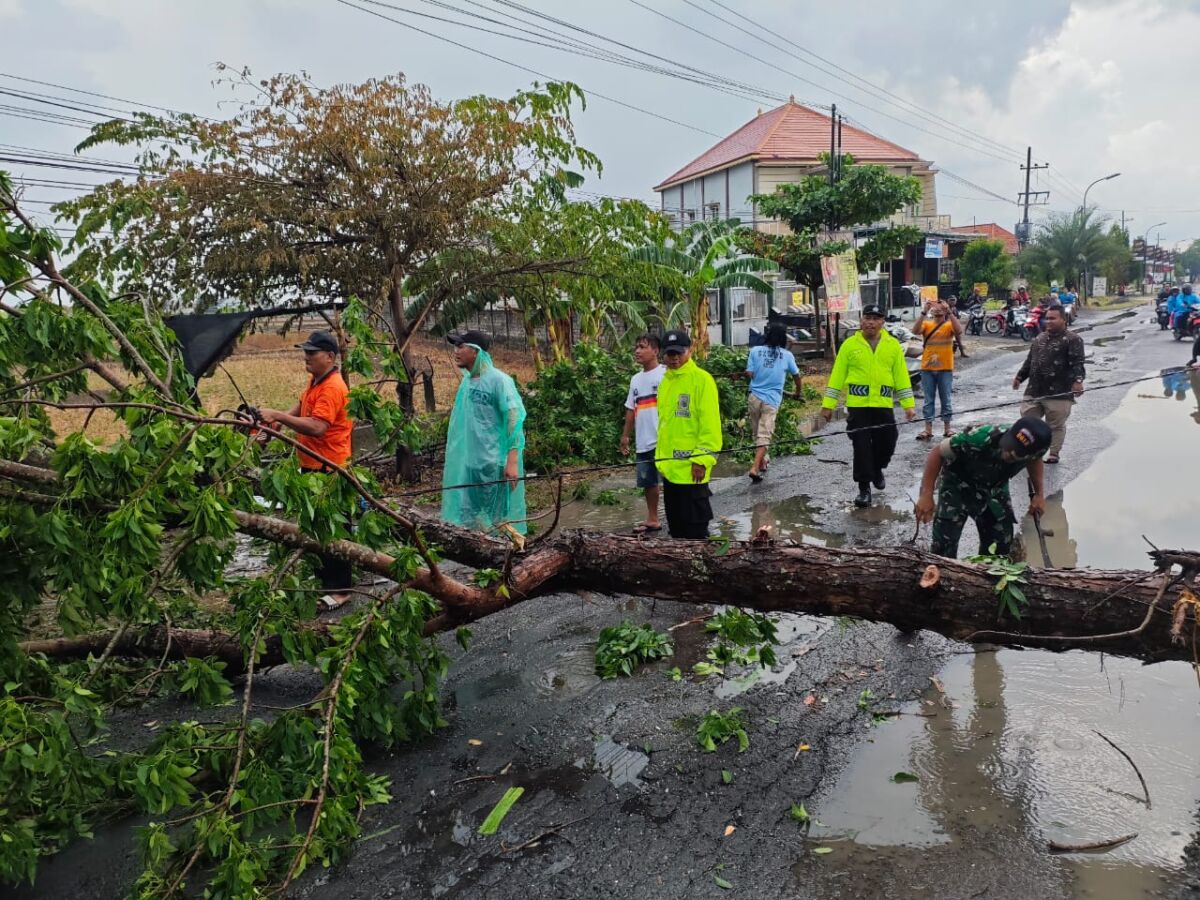 Sigap! Babinsa Jajaran Kodim 0812/Lamongan Bantu Warga Evakuasi Pohon Tumbang Akibat Angin Kencang