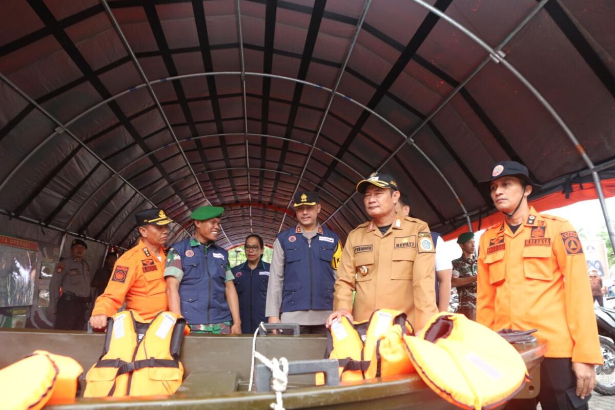 Peralatan yang ditinjau meliputi kendaraan operasional, perahu karet, logistik darurat, serta peralatan evakuasi.