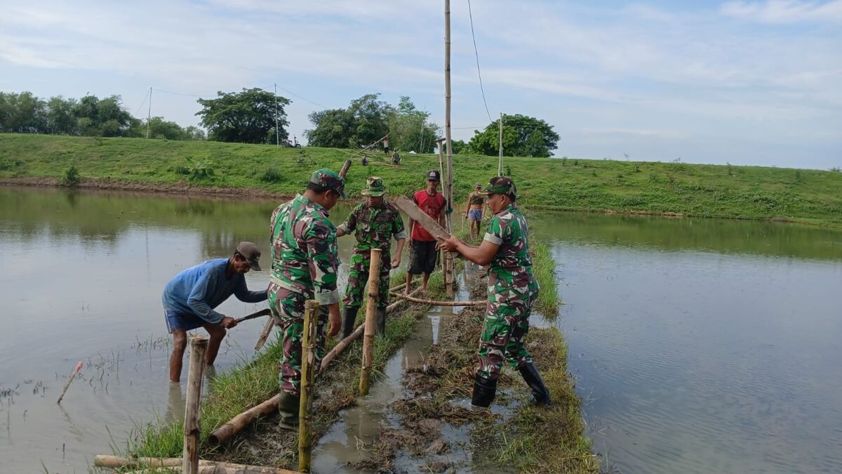 Babinsa Koramil 0812/21 Kalitengah Bersama Warga Gotong Royong Perbaiki Saluran Irigasi