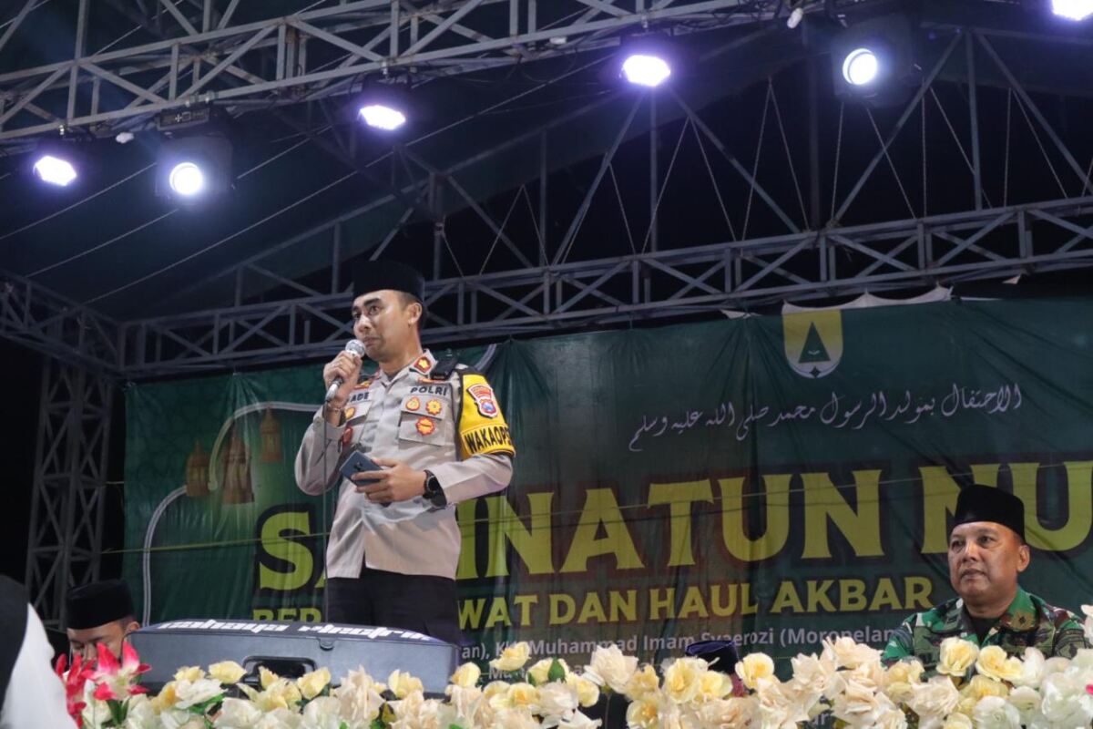 Hadiri Haul Akbar dan Pengajian Bersama Gus Miftah di Pondok Pesantren Safinatun Nur, Ini Pesan Wakapolres Lamongan.