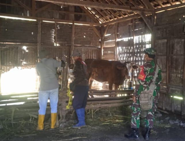 Babinsa Koramil 0812/09 Mantup Lakukan Pendampingan Vaksinasi PMK