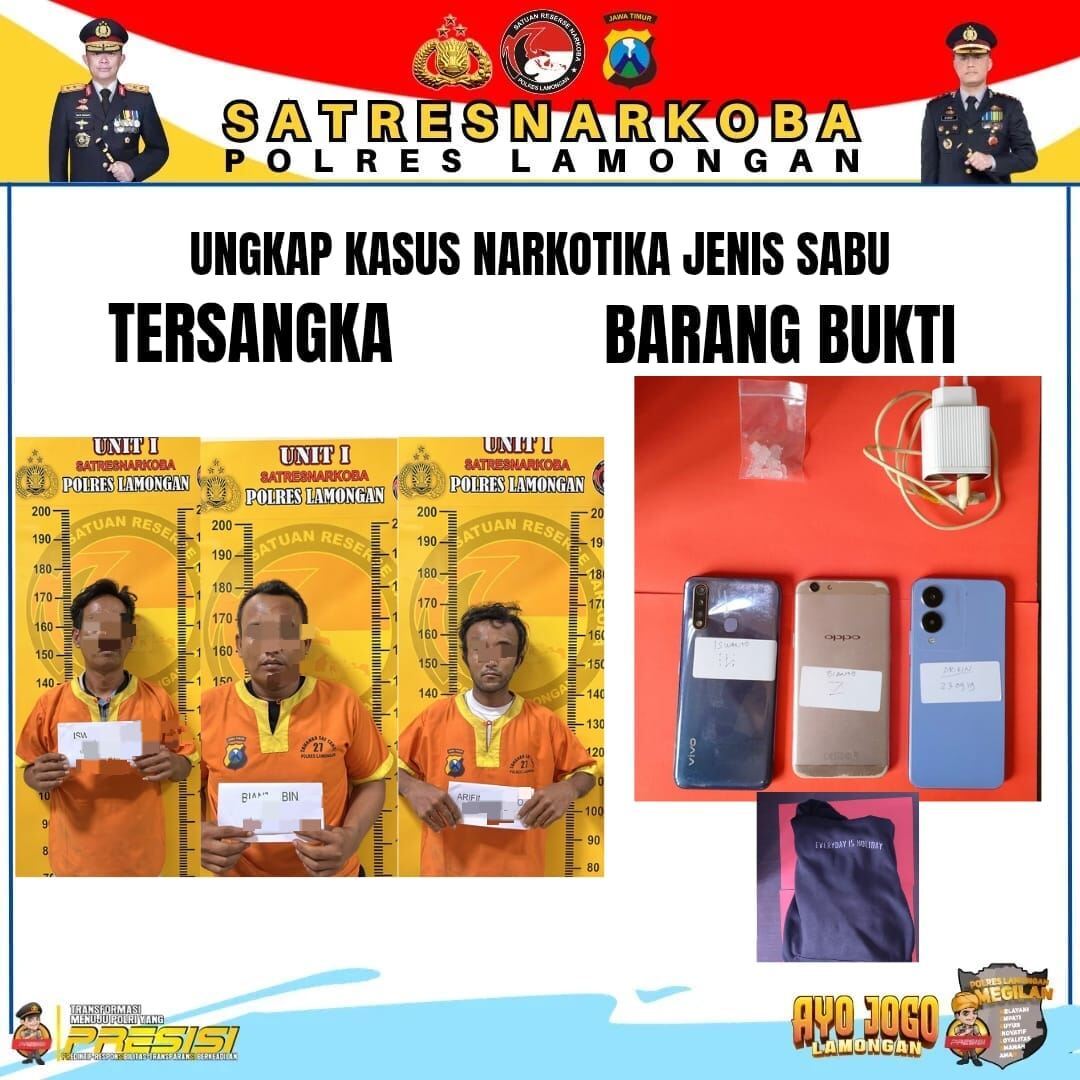 Tiga Pelaku Peredaran Narkotika di Sugio Berhasil dibekuk Polres Lamongan.