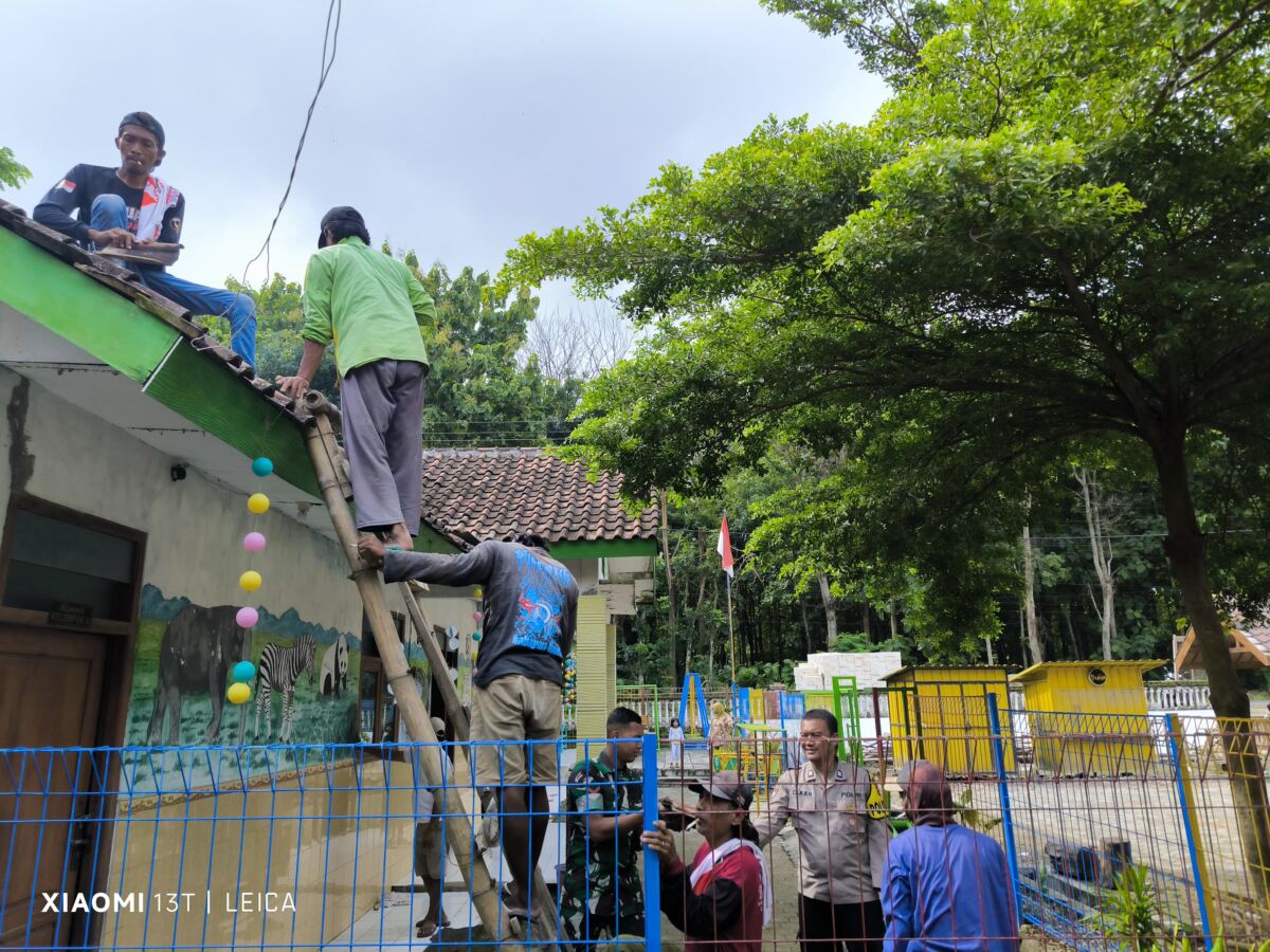 Sinergitas Babinsa Kodim 0812/Lamongan Bantu Rehab Gedung PAUD.