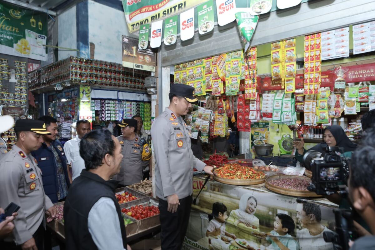 Kapolres Lamongan bersama rombongan langsung turun ke lapangan untuk memantau harga dan stok sembako di pasar.