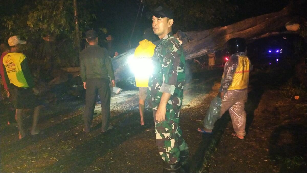 Dijelaskan Babinsa, pasca terjadinya hujan lebat yang disertai angin kencang semalam mengakibatkan pohon tumbang jenis asam tersebut tumbang hingga menutup ruas badan jalan sehingga mengganggu arus lalu lintas.