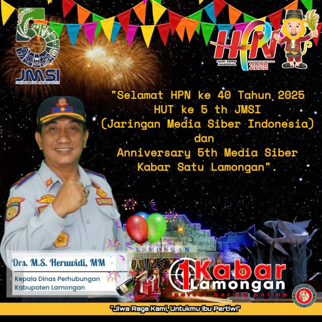 Lamongan – Selamat HUT ke 5 Tahun Media Kabar1lamongan.com dan Memperingati 5 Tahun JMSI (Jaringan Media Siber Indonesia) Sekaligus Dalam Rangka HPN (Hari Pers Nasional) ke 40 Tahun 2025.