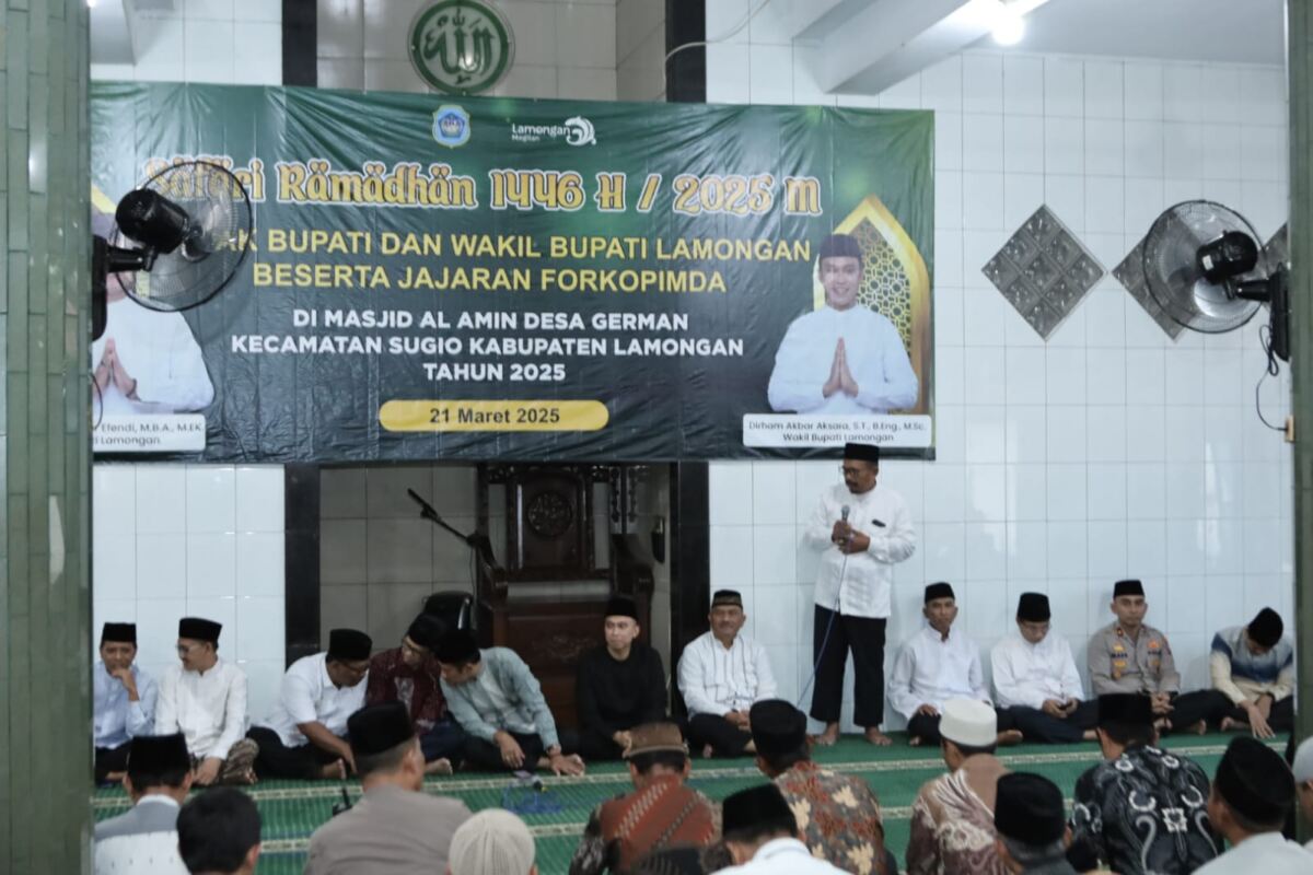 Kabar1lamongan.com, Wakapolres Lamongan, Kompol I Made Prawira Wibawa S. S.T., M.I.K., mewakili Kapolres Lamongan menghadiri kegiatan Safari Ramadhan 1446 H/2025 M bersama Bupati Lamongan Dr. H. Yuhronur Efendi, M.BA, M.EK dan Wakil Bupati Lamongan Dirham Akbar Aksara, B.Eng., M.Sc. Kegiatan yang berlangsung di Masjid Al-Amin, Desa German, Kecamatan Sugio, ini dihadiri sekitar 250 orang pada hari Jumat (21/03).