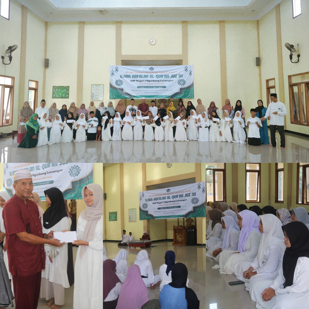 Kabar1lamongan.com, 28/03/25 – SMPN 1 Ngimbang melaksanakan kegiatan pemberian apresiasi kepada siswa-siswi yang mengikuti kegiatan Program Tahfidz Plus. Kegiatan ini bertujuan untuk meningkatkan hafalan Al-Quran siswa dan memotivasi mereka untuk terus menghafal.