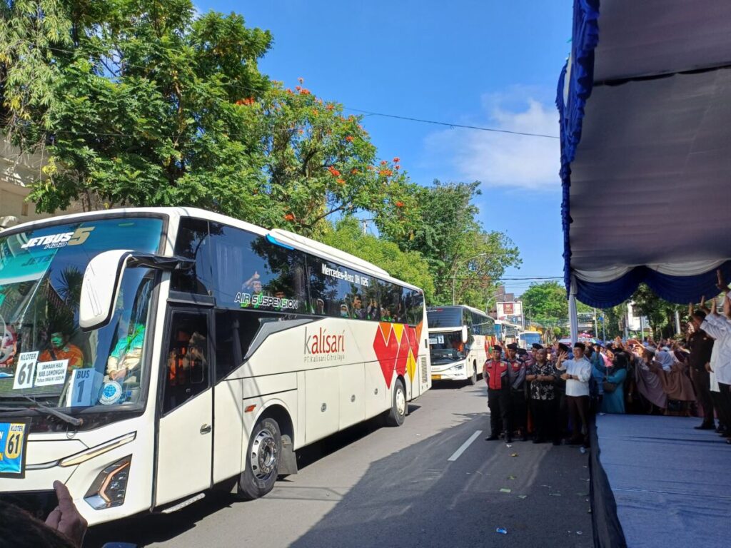 “Pagi hari pukul 04.00 WIB, kloter 59 diberangkatkan dari rumah makan Aqila menuju alun-alun Kota Lamongan, tempat mereka bergabung dengan kloter 62 yang berangkat pukul 08.00 WIB. Kedua kloter kemudian secara simbolis dilepas oleh Bupati Lamongan, Yuhronur Efendi, di Pendopo Lokatantra pada pukul 07.00 WIB. Setelah itu, mereka bersama-sama berangkat menuju Asrama Haji Sukolilo Surabaya dan diperkirakan tiba pukul 10.30 WIB,” kata Gus Adhim Sapa akrabnya.