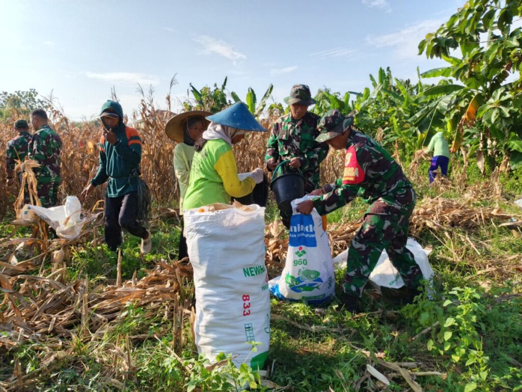 Dukung Ketahanan Pangan Nasional, Koramil 0812/11 Kedungpring Bersama PPL dan Poktan Panen Jagung