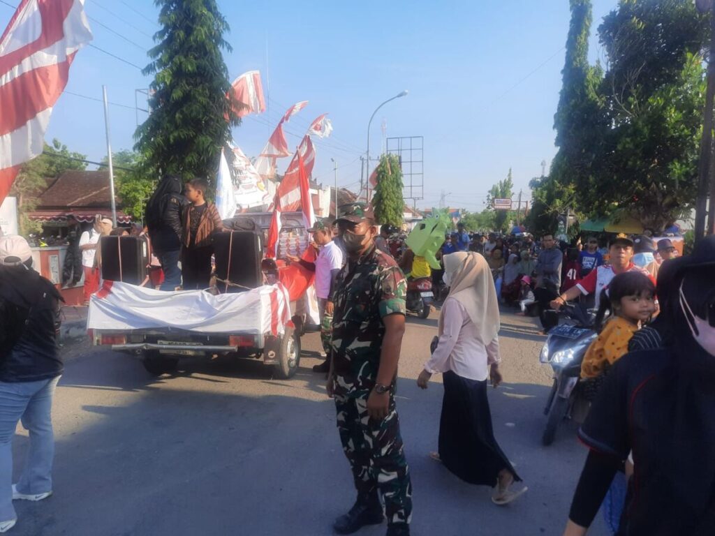Sinergitas Babinsa Jajaran Kodim 0812 Lamongan Dalam Pengamanan Karnaval HUT ke-80 RI
