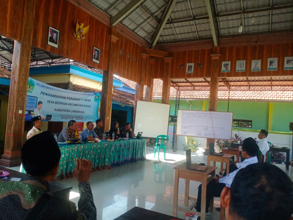 Kabar1lamongan.com -Danramil 0812/13 Sugio Kapten Arm Yudhi Kurniadio bersama Muspika Sugio menghadiri kegiatan ujian Perangkat Desa pada jabatan Sekdes dan Kasun yang diselenggarakan di Balai Desa Bedingin Kecamatan Sugio, Kabupaten Lamongan.