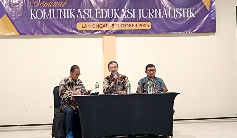 Kabar1lamongan.com – Jaringan Media Siber Indonesia (JMSI) Provinsi Jatim bersama Forum kader Bela Negara (FKBN) dan Komunitas Jurnalis Lamongan (KJL) menggelar seminar “Komunikasi dan Edukasi Jurnalistik” (KEJ) tahun 2025 yang diikuti ratusan kepala sekolah (Kasek), guru, staf sekolah, kepala desa (Kades) dan perangkat desa se Kabupaten Lamongan.