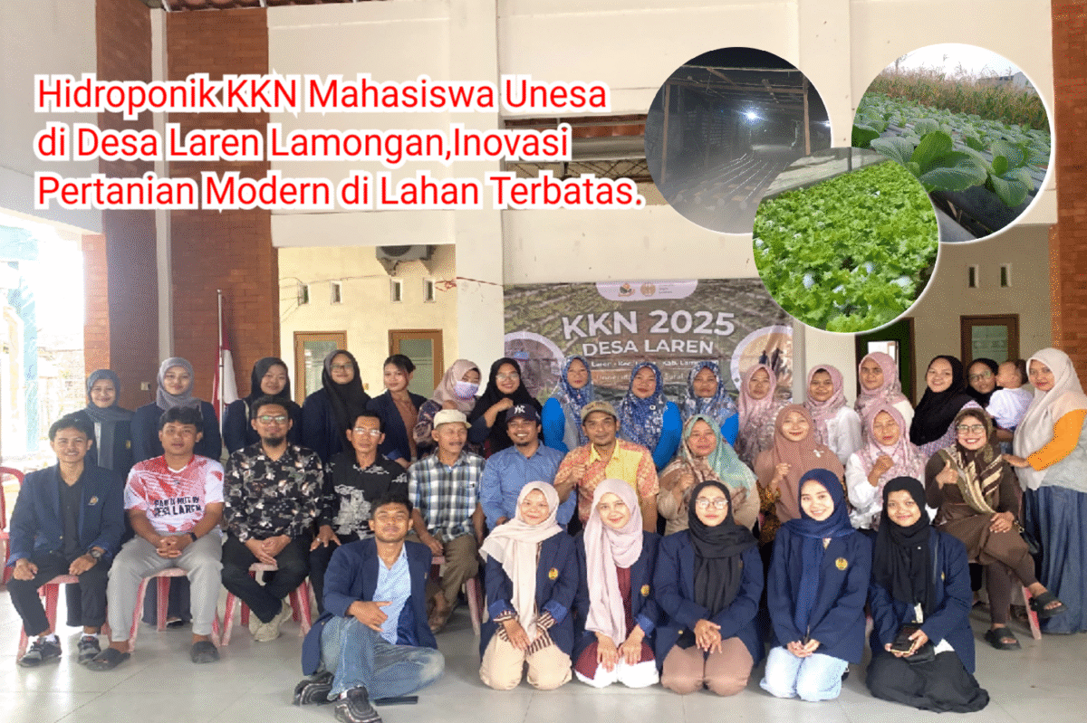Kabar1lamongan.com – Kuliah Kerja Nyata (KKN) Mahasiswa Unesa yang ditempatkan di Desa Laren, Kecamatan Laren, Kabupaten Lamongan, menginisiasi salah satu program unggulan yang berfokus pada pengembangan pertanian modern berbasis hidroponik. Senin, (20/10/2025)