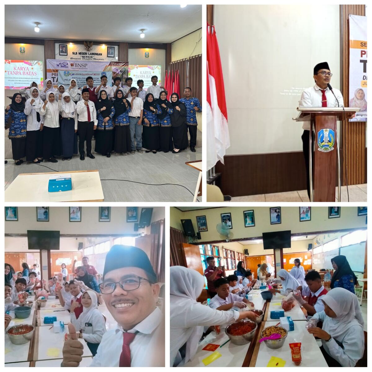 Kabar1lamongan.com – Banyak masyarakat tidak tahu kalau Sekolah Luar Biasa (SLB) Negeri Lamongan yang berlokasi di Banjar Mendalam Lamongan ternyata sangat hebat karena punya Lembaga Sertifikasi Profesi (LSP). Padahal ini sekolah luar biasa yang menampung berbagai macam anak berkebutuhan khusus. Biasanya LSP ada di SMK atau sekolah kejuruan, akan tetapi Ini ada di SLB.