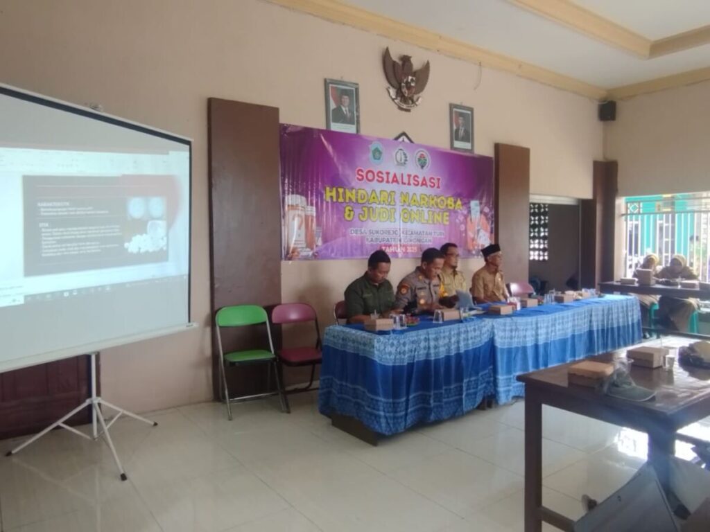 Kabar1lamongan.com – Sinergi antara TNI, Polri, dan Pemerintah Kecamatan Turi semakin kuat dalam upaya pencegahan dan pemberantasan ancaman sosial di masyarakat. Hal ini terwujud dalam kegiatan Sosialisasi Bahaya Narkoba dan Judi Online yang digelar di Balai Desa Sukorejo, Kecamatan Turi, Lamongan.