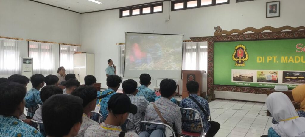 “Kami berterima kasih atas kunjungan ini. Hari ini kami akan menampilkan video visual mengenai proses produksi dan profil pabrik gula Madukismo,” ujar Bapak Mahmud dalam sambutan pembukaan.