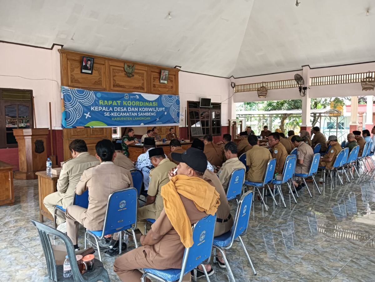 Kabar1lamongan.com,– Danramil 0812/08 Sambeng, Kapten Inf Moh. Jari, bersama jajaran Musyawarah Pimpinan Kecamatan Sambeng menghadiri Rapat Koordinasi penting yang melibatkan seluruh Kepala Desa (Kades) dan Kepala Unit Pelaksana Teknis (UPT) se-Kecamatan Sambeng.