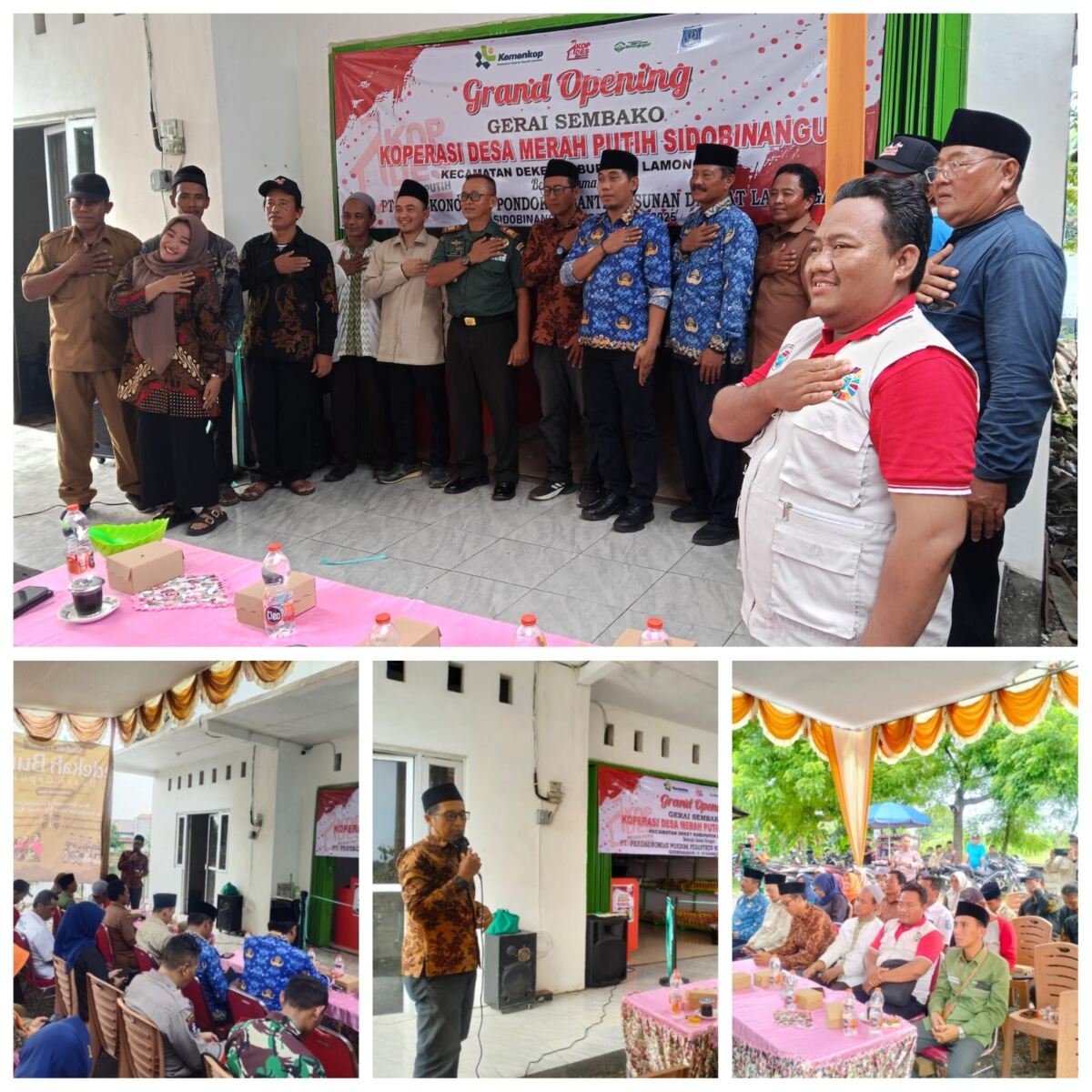 Peresmian Gerai Sembako KDMP Desa Sidobinangun ditandai dengan pemotongan pita dan doa bersama yang dihadiri oleh Forkopimcam Kecamatan Deket, perangkat desa, tokoh masyarakat, serta warga sekitar.