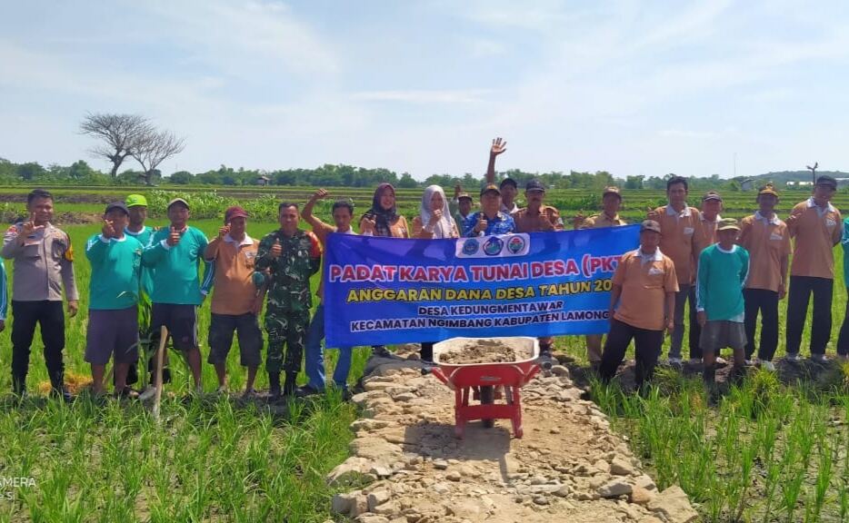 Tingkatkan Infrastruktur Tani, Babinsa Koramil 0812/06 Ngimbang Dampingi Padat Karya Tunai Desa Kedungmentawar.